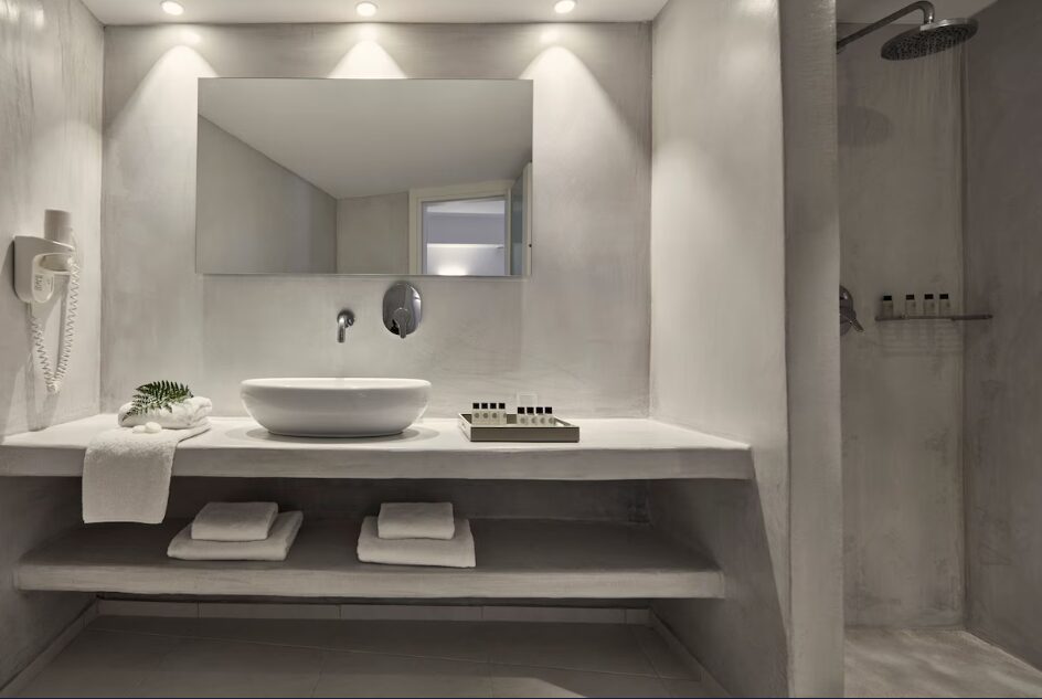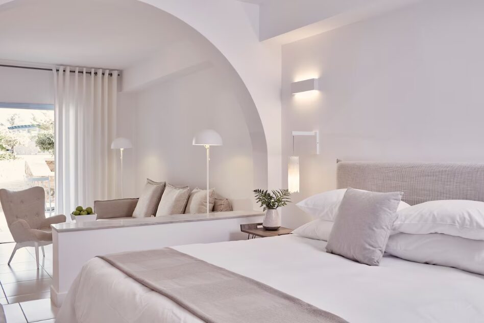 - 위치: 에게해의 독특한 풍경을 자랑하는 페리볼로스 블랙 샌드 비치(Perivolos Black Sand Beach) 바로 앞에 자리하고 있어요. 덕분에 아침저녁으로 파도 소리를 들으며 산책하기 정말 좋습니다.